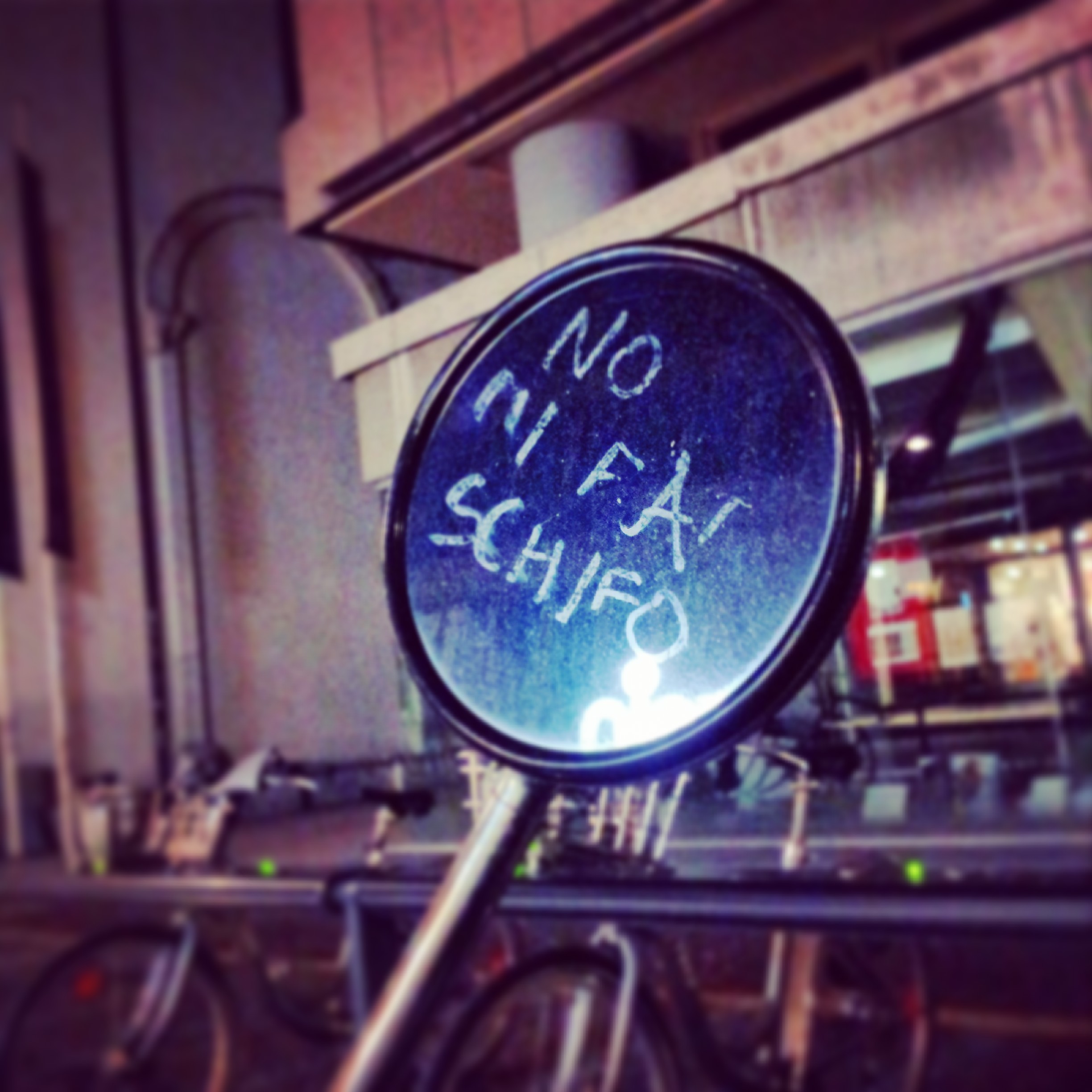 Dopo un paio di minuti esce anche lui dalla biblioteca. Sullo specchietto del suo motorino scintilla alla luce del lampione una scritta fatta con la scolorina.